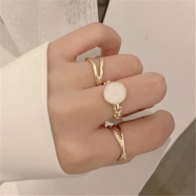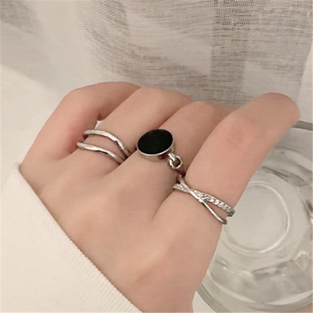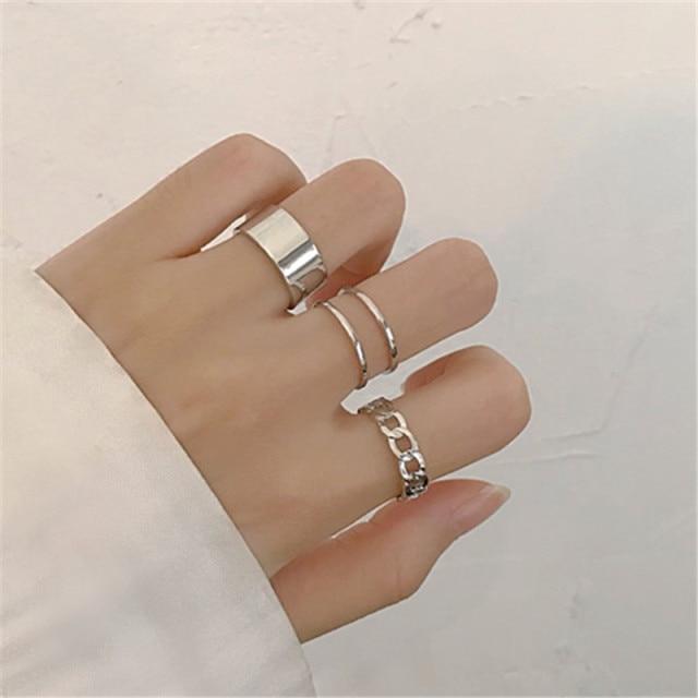 Resizable Hollow Rings Set for Women Punk Metal Geometric Round Finger Ring Fashion Jewelry Female Wedding Bands Party