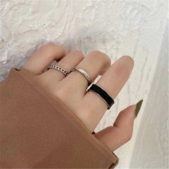Resizable Hollow Rings Set for Women Punk Metal Geometric Round Finger Ring Fashion Jewelry Female Wedding Bands Party