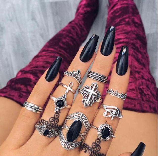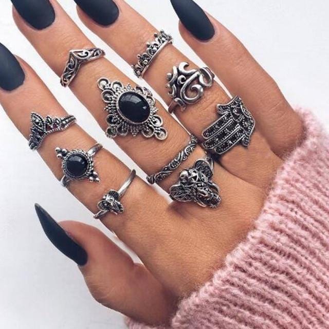rings for girls black ring set fashion jewelry bohemian style bague couple anillo schmuck accessories for women egirl lgbt
