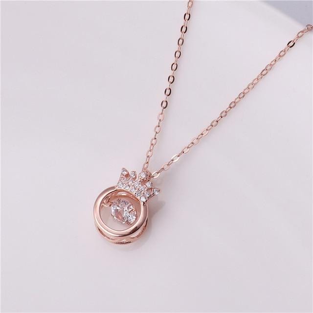 Rose-Gold Alloy Crown Throbbing Zircon Necklace Women 2021 Latest Wedding Royal Style 3 Colors Clean Stone Lady Party Jewelry