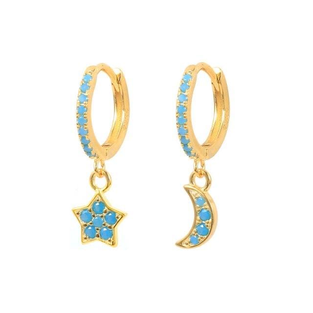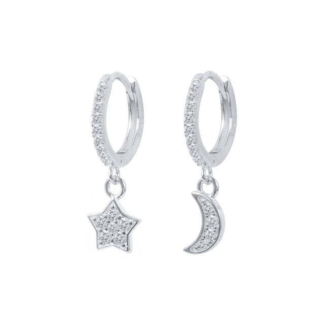 ROXI 925 Sterling Silver Colorful Zircon Star Hoop Earrings For Women Enamel Clip Pendientes Cartilage Earrings Jackets Jewelry
