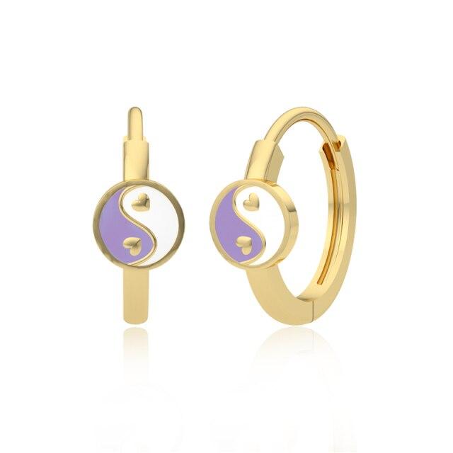 ROXI Multible Colorful Enamel Crystals Round Hoop Earrings for Women 925 Sterling Silver Yin Yang Heart Jewelry Earrings Huggie