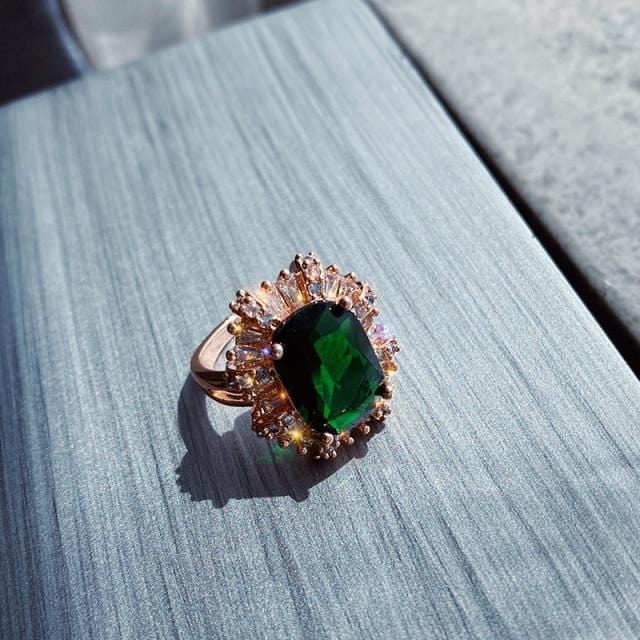 Royal Style French Luxury Green Crystal Gold Opening Ring For Woman Shining Zircon Korean Jewelry Wedding Party Girl's Sexy Ring