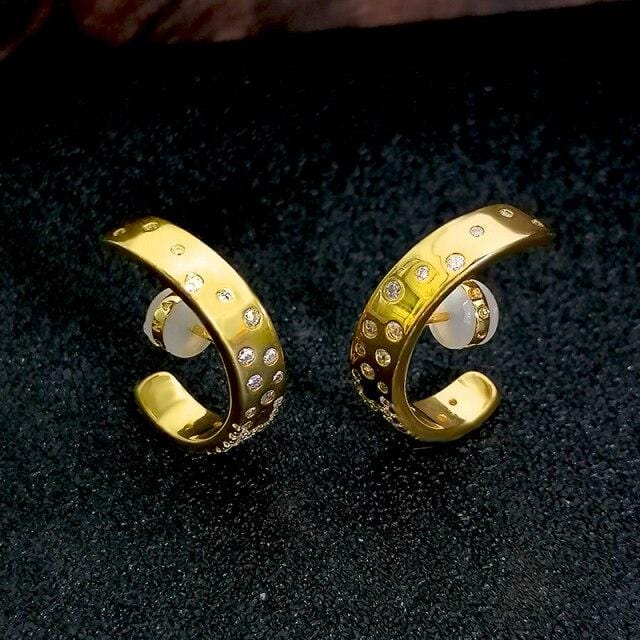 S925 sterling silver golden zircon hollow heart-shaped earrings luxury brand Monaco jewelry earrings