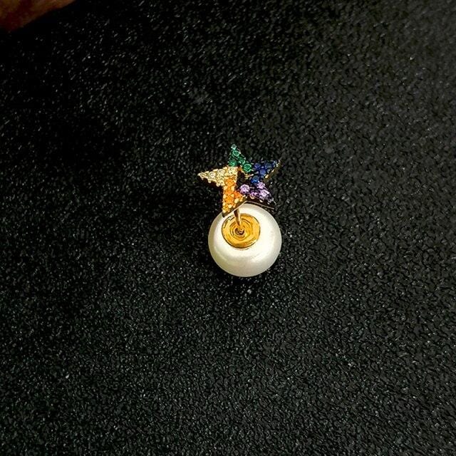 S925 sterling silver golden zircon natural pearl five-pointed star heart-shaped earrings luxury brand Monaco jewelry gift