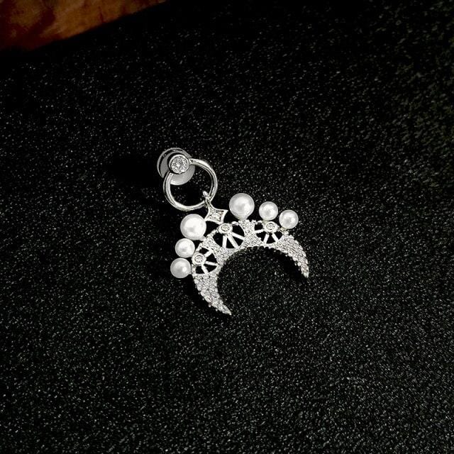 s925 sterling silver women silver moon earrings with natural pearls luxury compact fashion cute monaco jewelry gift