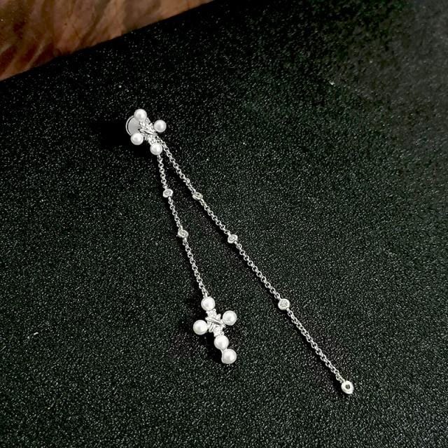 s925 sterling silver women silver moon-shaped zircon inlaid natural pearl tassel earrings luxury fashion monaco jewelry gift