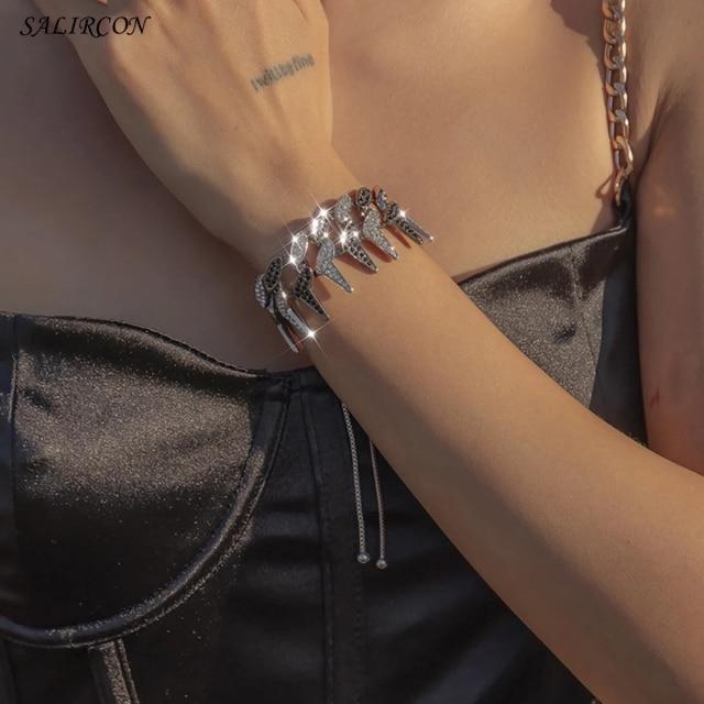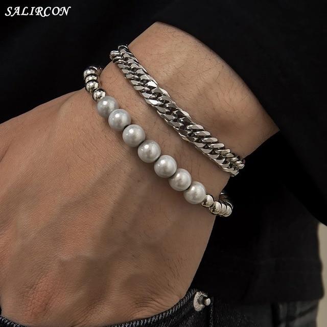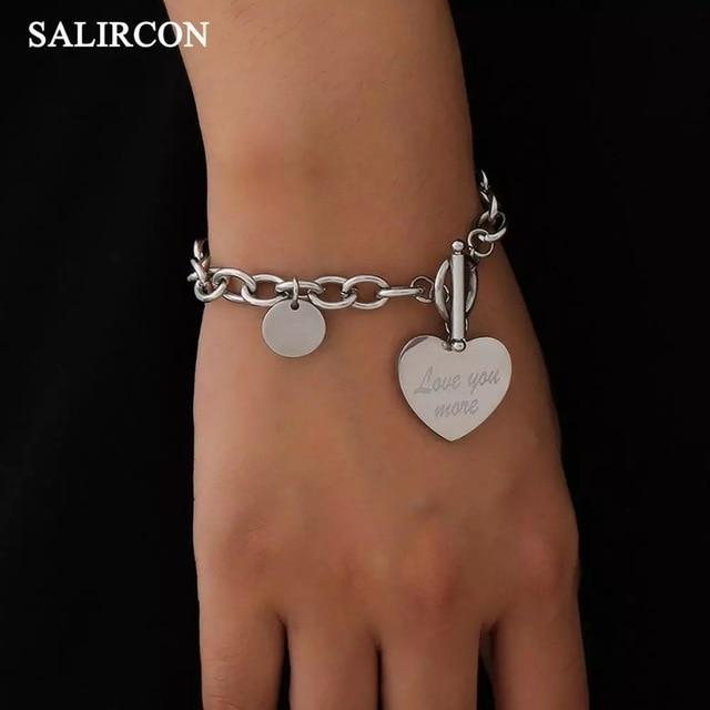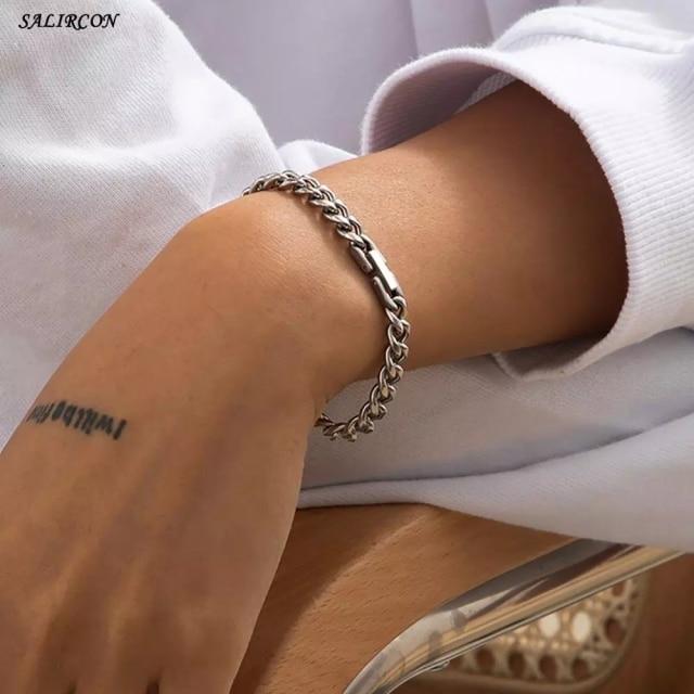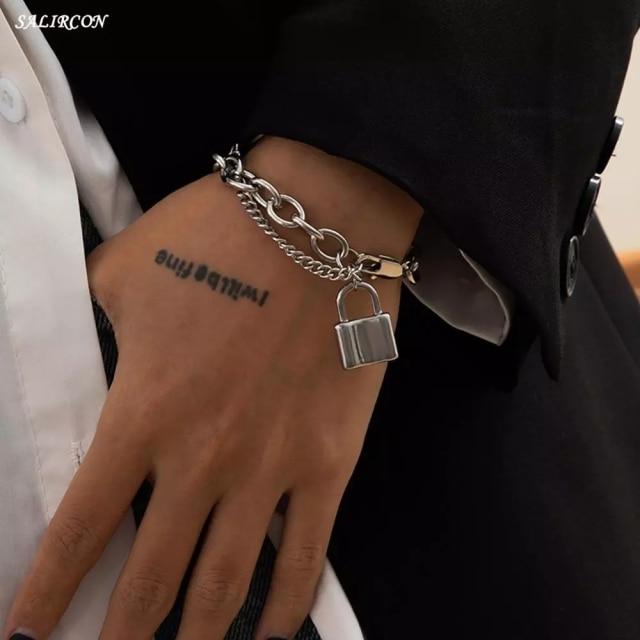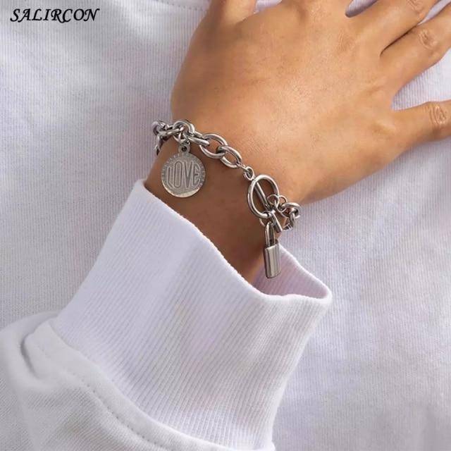 Salircon Kpop Stainless Steel Lock Pendant Bracelet on Hand Punk Chain Women Men Bracelets Charm Couple Bracelet Jewelry Gift