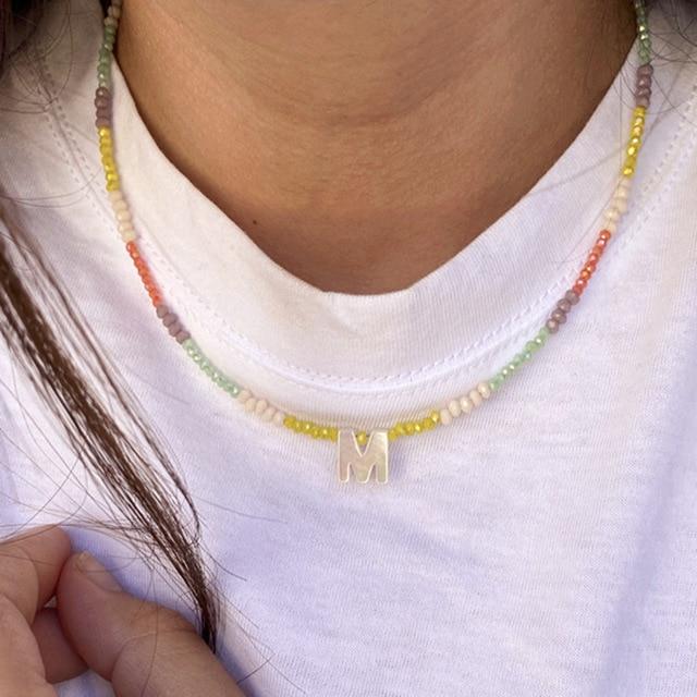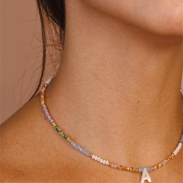 Shell letter necklace 2mm crystal 2020 new jewelry women short boutique beaded accessories charm Christmas gift fashion wild