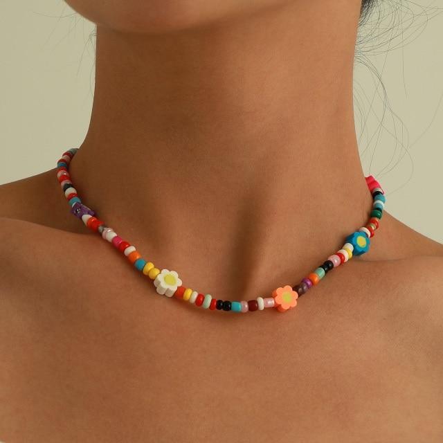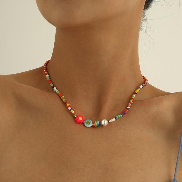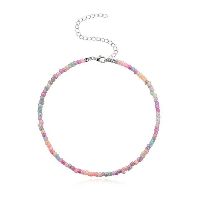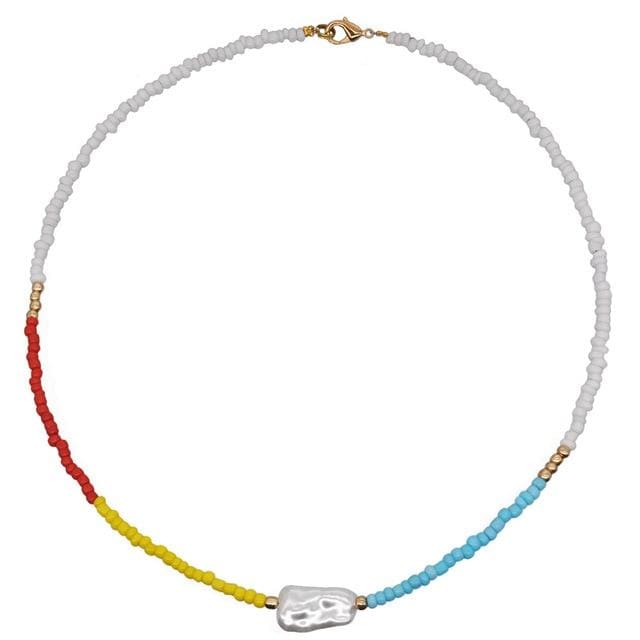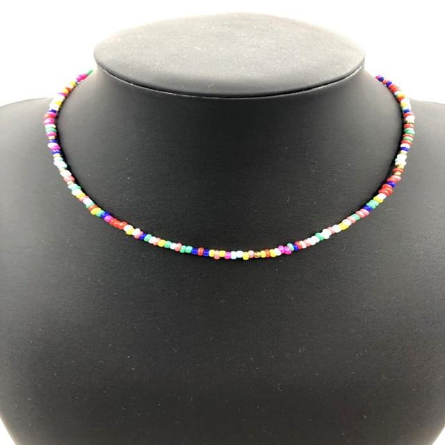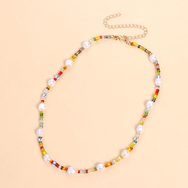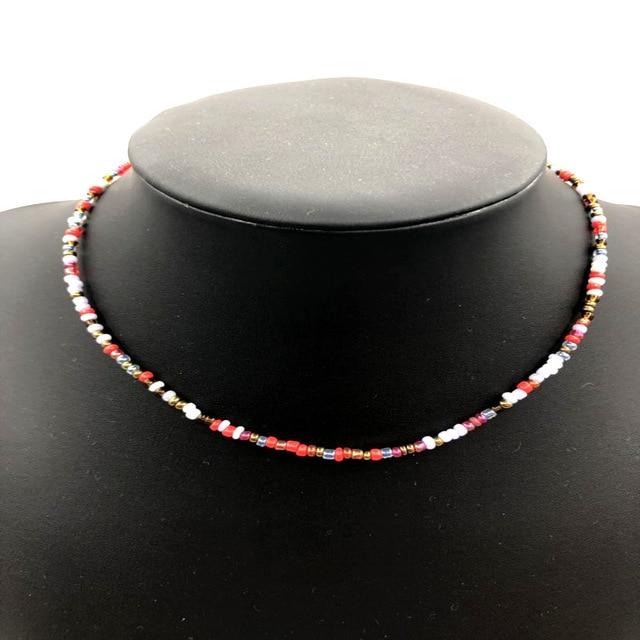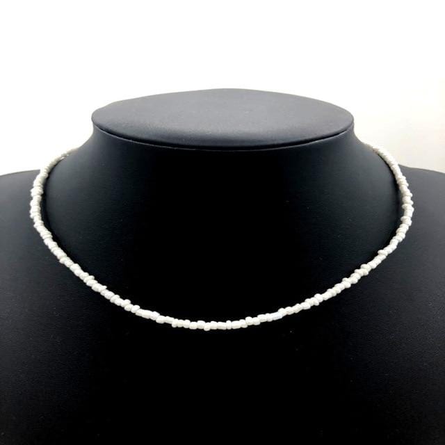 Simple Pearl Seed Beads Strand Necklace Women String Beaded Short Choker Necklace Jewelry Choker Necklace Summer Beach Boho Gift