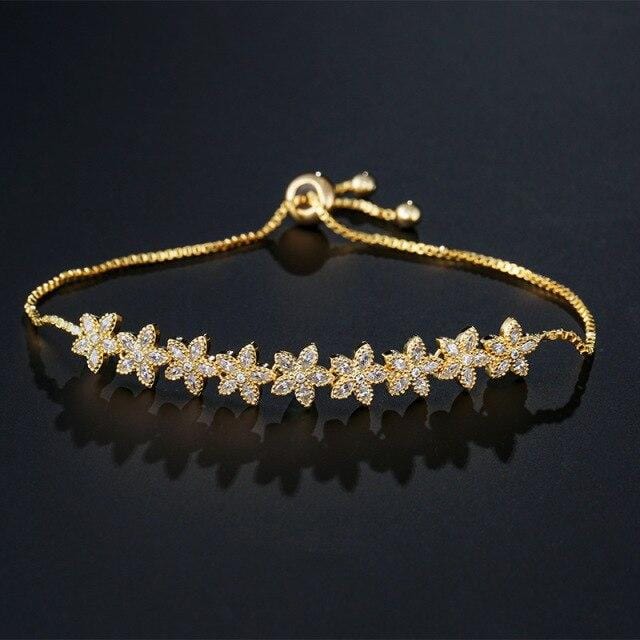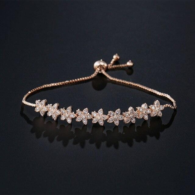 SIPENGJEL Cubic Zirconia Small Flower Set Bracelet Shiny Crystal Adjustable Bracelets For Women Wedding Party Jewelry Gift 2021