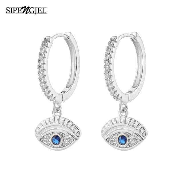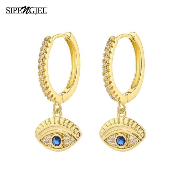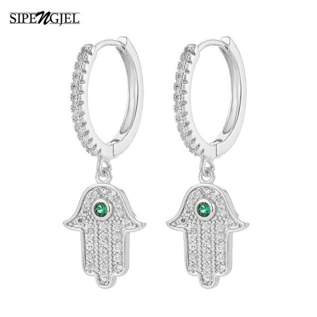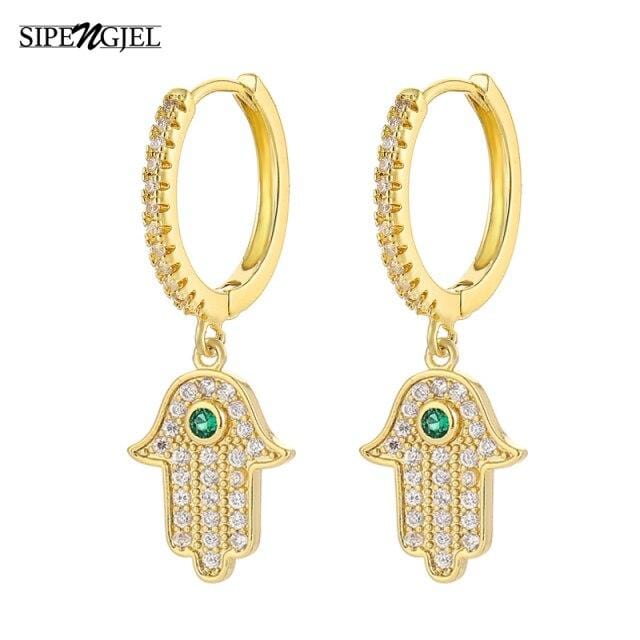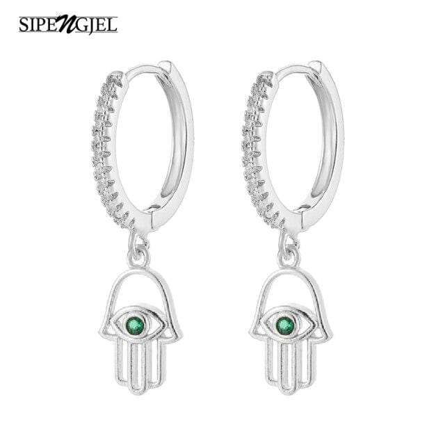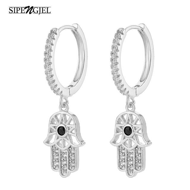 SIPENGJEL Fashion Fatimea Hand Drop Earrings Simple Round Eye Pendant Hoop Earrings For Women Party Jewelry 2021