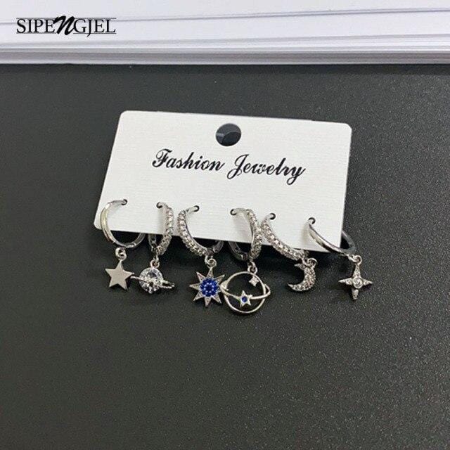 SIPENGJEL Fashion Mini Star Pendant Hoop Earrings Sets Black Crystal Drop Earrings For Women Party Jewelry 2021