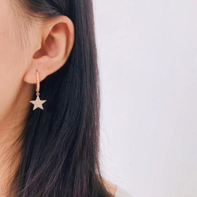 SIPENGJEL Tiny Geometric Star Lighting Drop Hoop Earrings Personality Pendant Hoop Earrings For Women Party Jewelry 2021