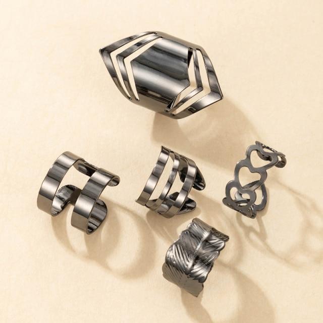 Tocona 5pcs/Set Bohemia Gold Color Finger RingsFashionable Heart Geometric Design For Women Female Jewelry Party Rings