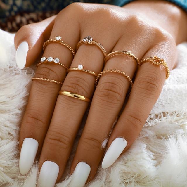 Tocona Edgy Tassel Moon Gold Rings Sets Shiny Crystal Stone Pearl Heart Coin Geometric Open Boho Jewelry for Women Men кольца