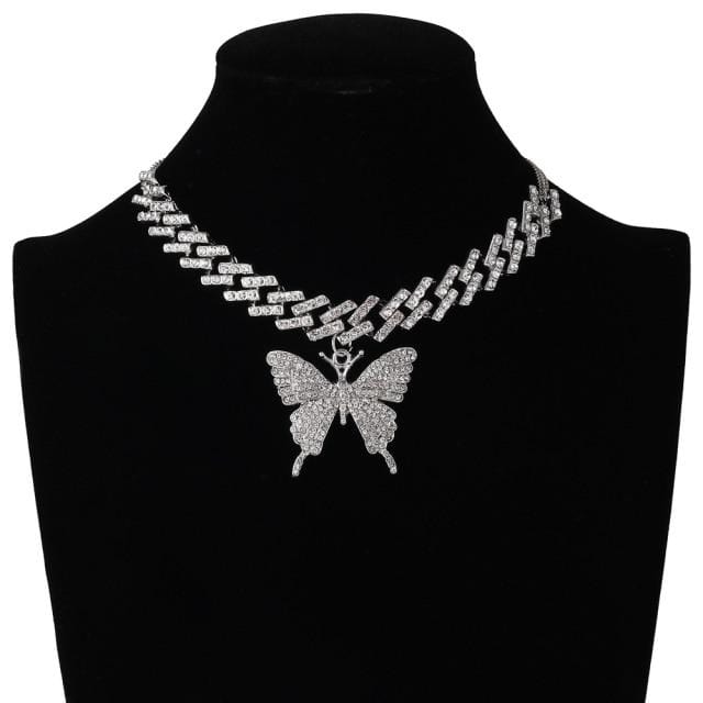 Trendy Butterfly Necklace For Women Iced Out Cuban Link Chain Girl Chocker Hip Hop Pendant Sexy Outfits Jewelry