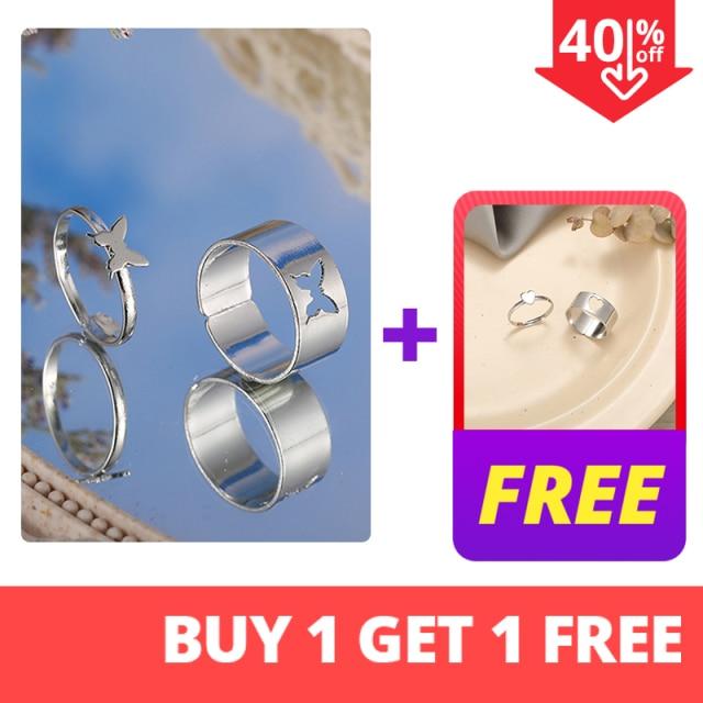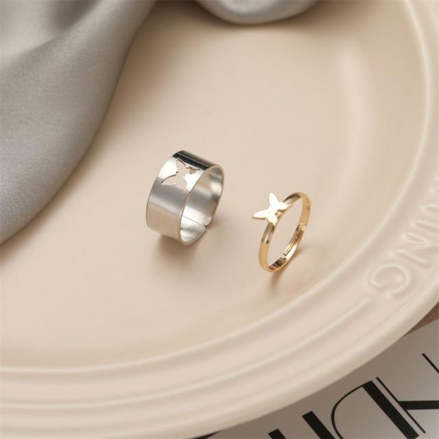 Trendy Gold Butterfly Rings For Women Men Couple Love Silver Color Rings Set Friendship Engagement Wedding Open Rings Jewelry