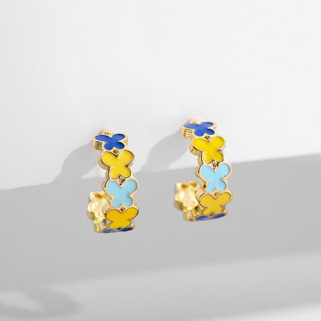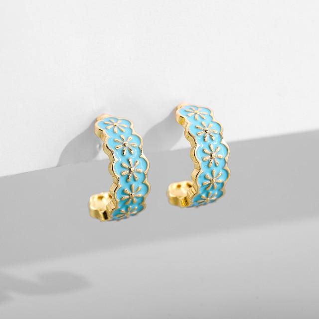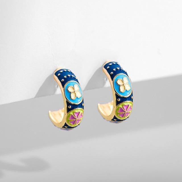 Vintage Enamel Flower Small Hoop Earrings Trendy Geometric Statement Round Circle Huggie Earring Fashion Jewelry Brincos