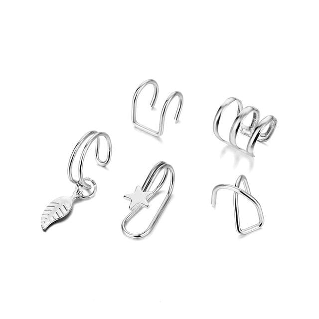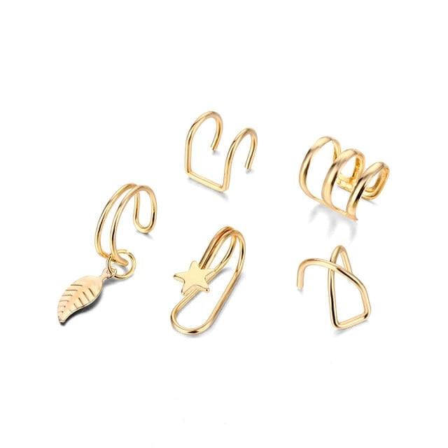 VKME Gold Star Leaves Non-Piercing Ear Clip Earrings For Women Men Simple Fake Cartilage Ear Cuff Jewelry Clip d'oreille