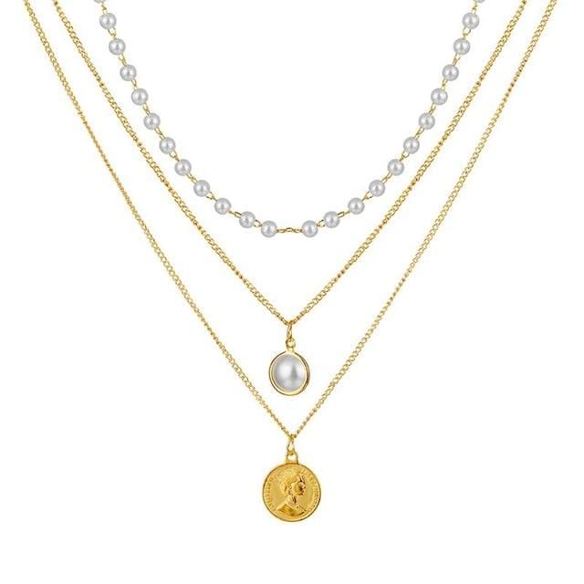 VKME Trendy Multilayered Butterfly Pearl Necklace For Women Fashion Sun Star Gold Pearl Choker Necklaces 2021 Trend Jewelry Gift