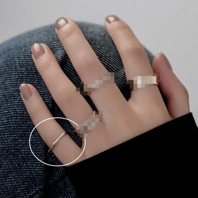 XIYANIKE 925 Sterling Silver Korean Wide Thin Chain Ring Female INS Simple Handmade Opening Index Finger Fashion Jewelry Couple