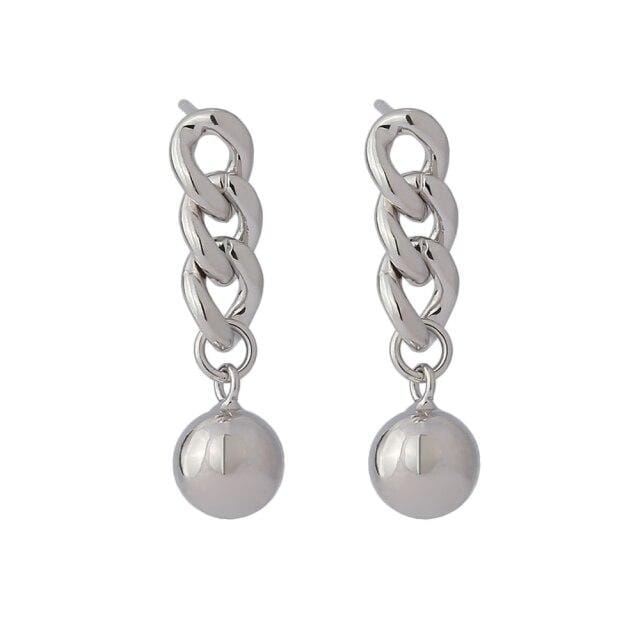 Yhpup 100% 925 Solid Sterling Silver Chain Drop Earrings for Women Stylish Geometric Pendant Metal Ball Earrings Fine jewelry