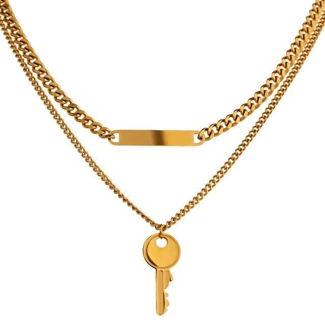 Yhpup Minimalist Stainless Steel key Layered Pendant Necklace Jewelry Charm Metal 18 K Plated Chain Choker Statement Necklace