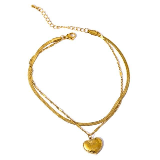 Yhpup Romantic Heart Pendant Necklace Chain Stainless Steel Double Layered Jewelry Collar Necklace цепочка на шею женская Gift