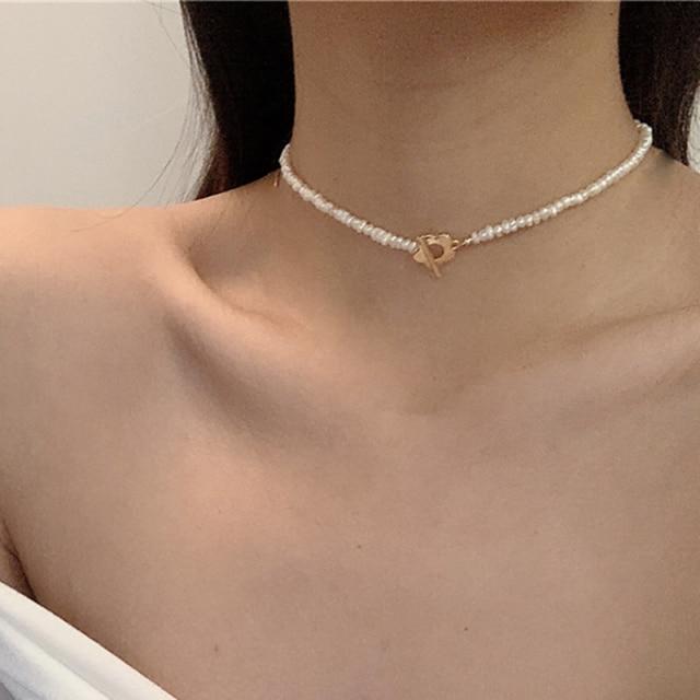ZOVOLI Punk Gold Cuban Link Chain Necklace Pearl Heart Bow Knot Pendant Choker Necklaces For Women 2020 Fashion Jewelry Gifts