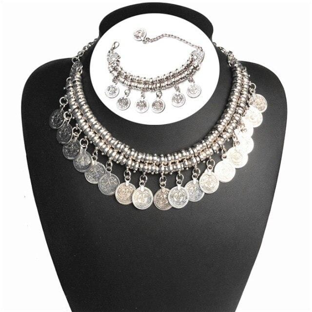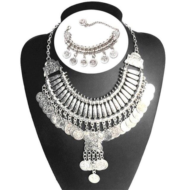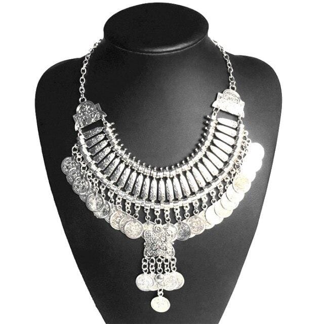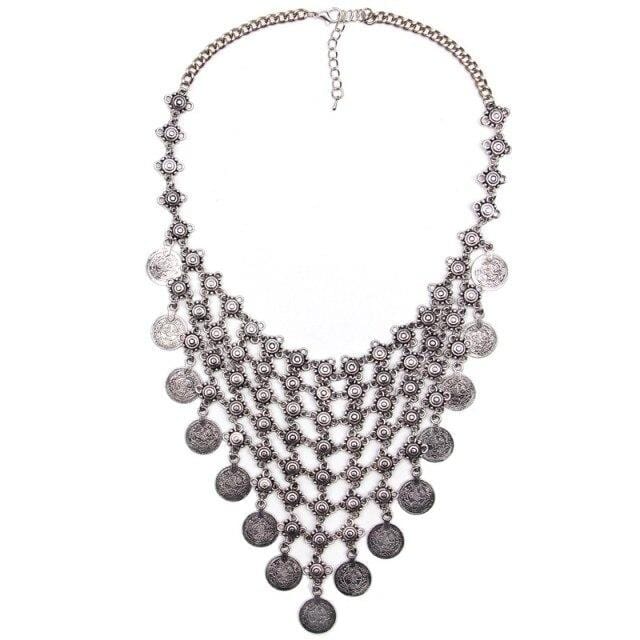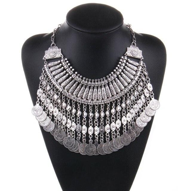 Ztech Boho Antique Coin Necklace for Women African Statement Tibetan Long Tassel Necklaces & Pendant Bohemian Maxi Jewelry Women