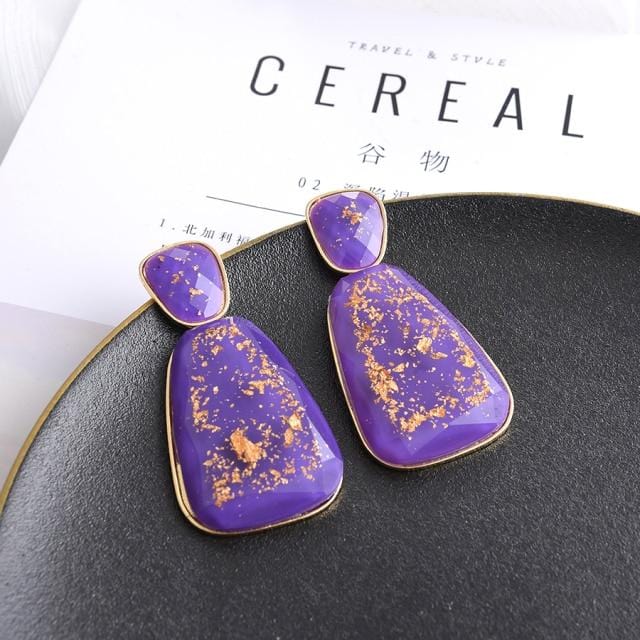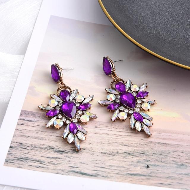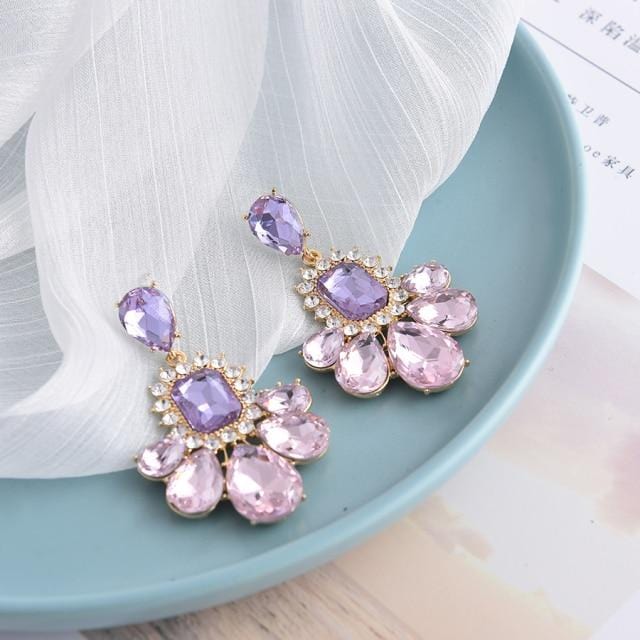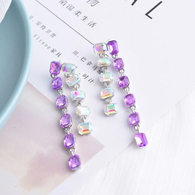 Ztech Collection Purple Color Drop Earrings For Women Students Petal Crystal Acrylic Beads Tassel Holiday Party Jewelry