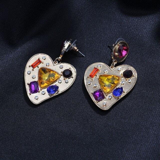 Ztech Heart Pendants Pink/Yellow Crystal Drop Earrings For Women Girls Luxury Elegant Wedding Jewelry Party Gifts Wholesale