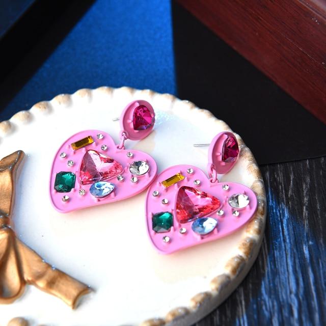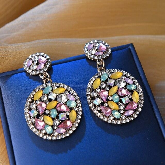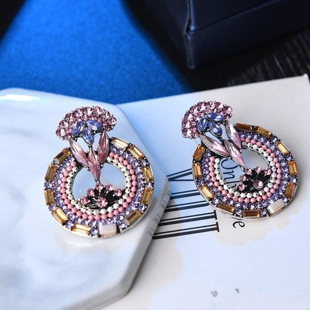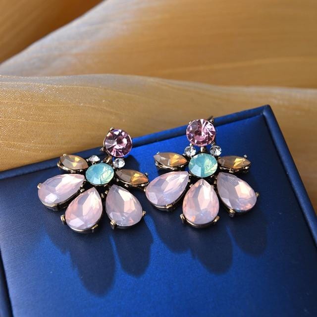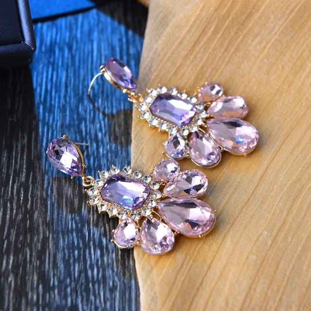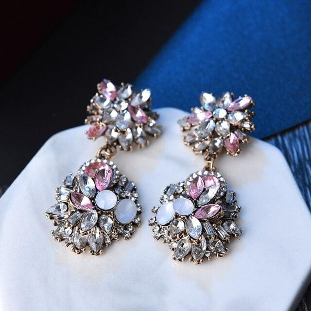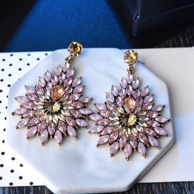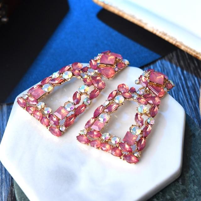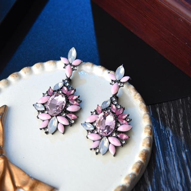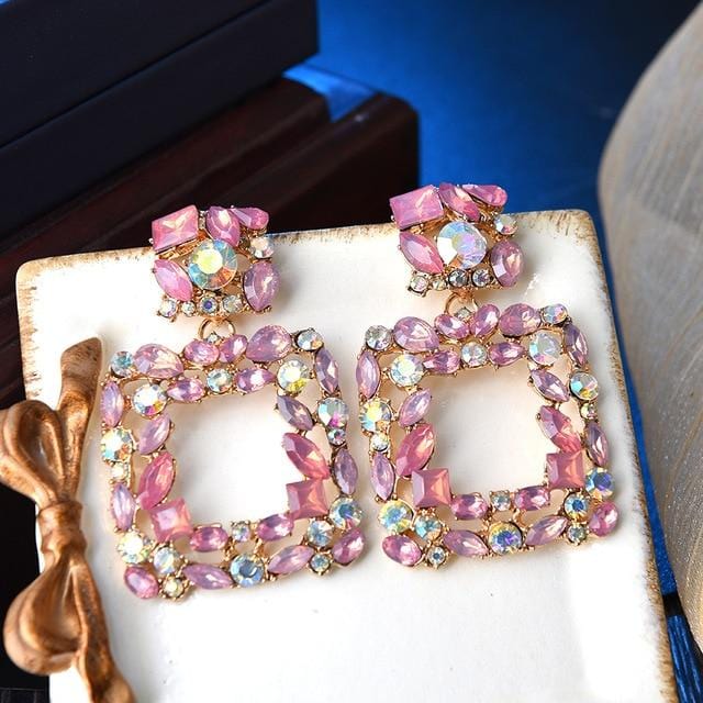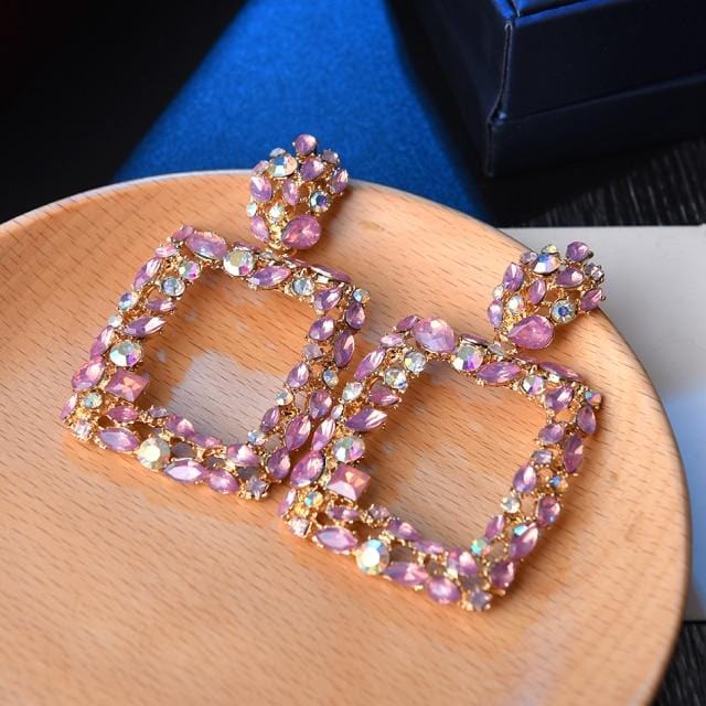 Ztech Pink Crystal Collection Vintage Drop Earrings Statement Earrings Large Rhinestone Earings Party Jewelry Brincos Pendientes