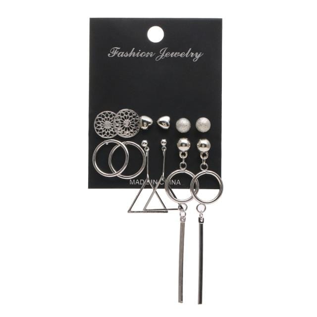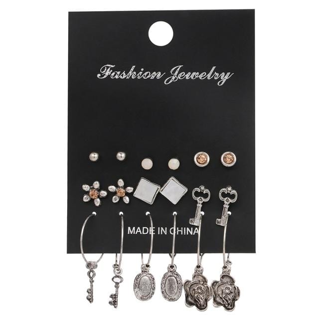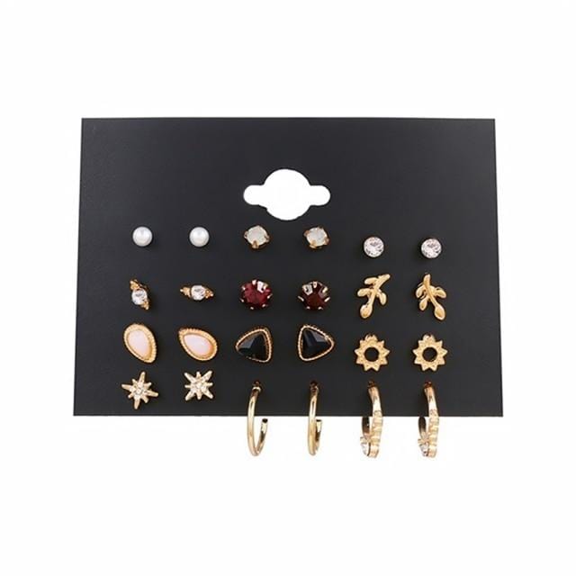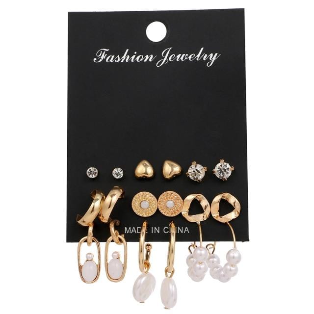 12 Pairs/Set Women's Earrings Pearl Earrings For Women Bohemian Fashion Jewelry 2021 Geometric Crystal Heart Stud Earrings New
