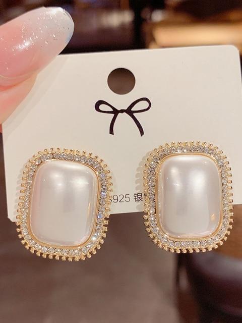 2021 New Fashion Korean Oversized White Pearl Drop Earrings for Women Bohemian Golden Round Pearl Wedding Earrings Jewelry Gift