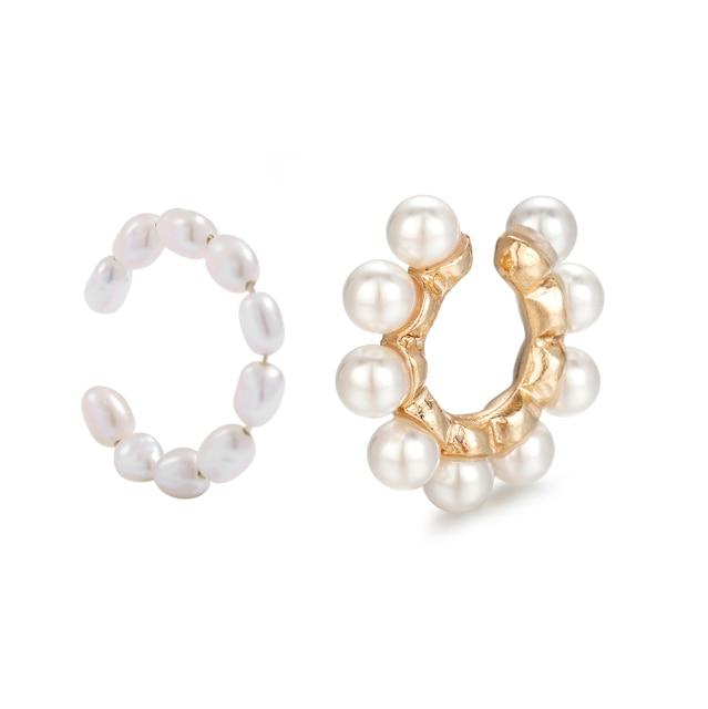 2021 New Fashion Pearl Ear Cuff Bohemia Stackable C Shaped CZ Rhinestone Small Earcuffs Clip Earrings for Women Wedding Jewelry