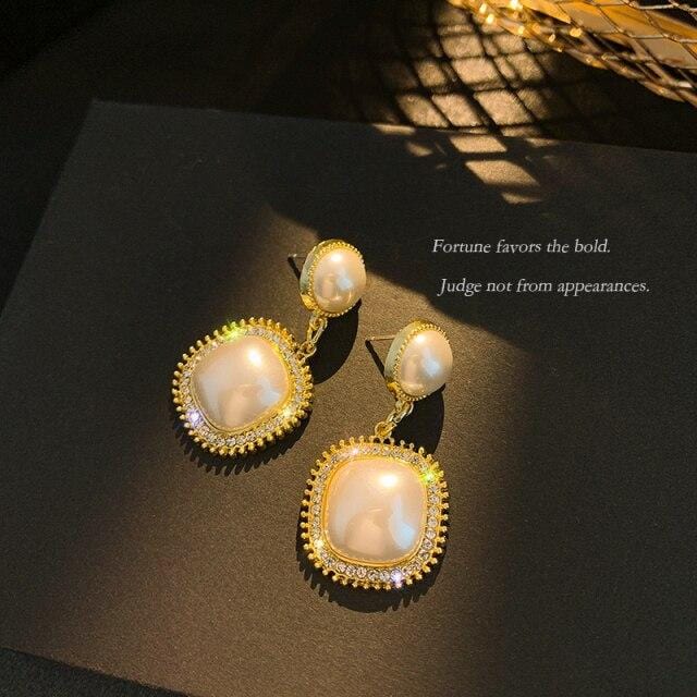2021 NEW South Korea Dongdaemun Square Pearl Earrings Temperament All-Match Gem Geometric Earrings Popular Earrings Women