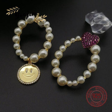 925 natural pearl smiley face pendant earrings luxury brand Monaco jewelry