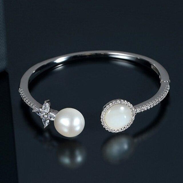 925 Sterling Silver Dark Blue V-shaped Round Buckle Crocodile Fritillaria Freshwater Pearl Bird Meteor Bracelet Monaco Jewelry