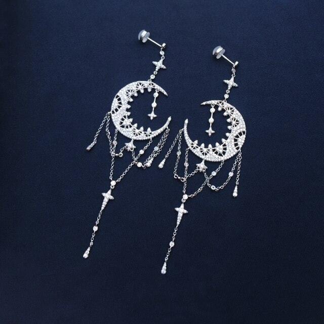 APM s925 sterling silver MONACO pearl tassel earrings long star moon earrings high-end design party jewelry