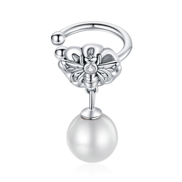 bamoer 1Piece 925 Sterling Silver Bee Shell Pearl Ear Clip Angel Wing Ear Cuff Heart Beast Teeth Earring for Women Men DIY