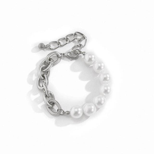 Charm Gold&Silver Color Thick Link Chain Bracelets for Women Girls Fashion Beads Pearl Bracelet Bangles Irregular Hand Jewelry