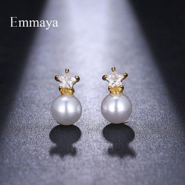 Emmaya Charming Little Star Above Pearl Adorable Design Stud Earring For Women And Ladies Zirconia Attractive Banquet For Gifts