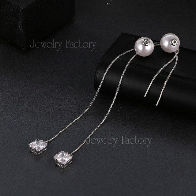 Emmaya Fashion Crown/Square Shape Dangle Earring Long Tassel Pearl Zircon Earrings Rhinestone Women Lady Party Jewelry