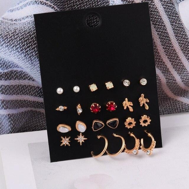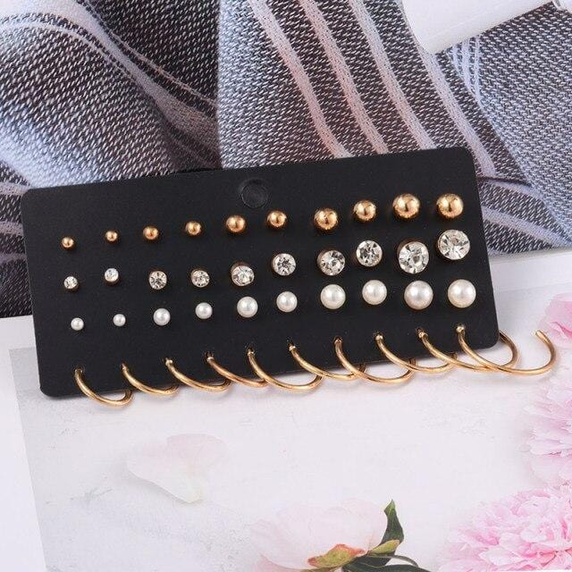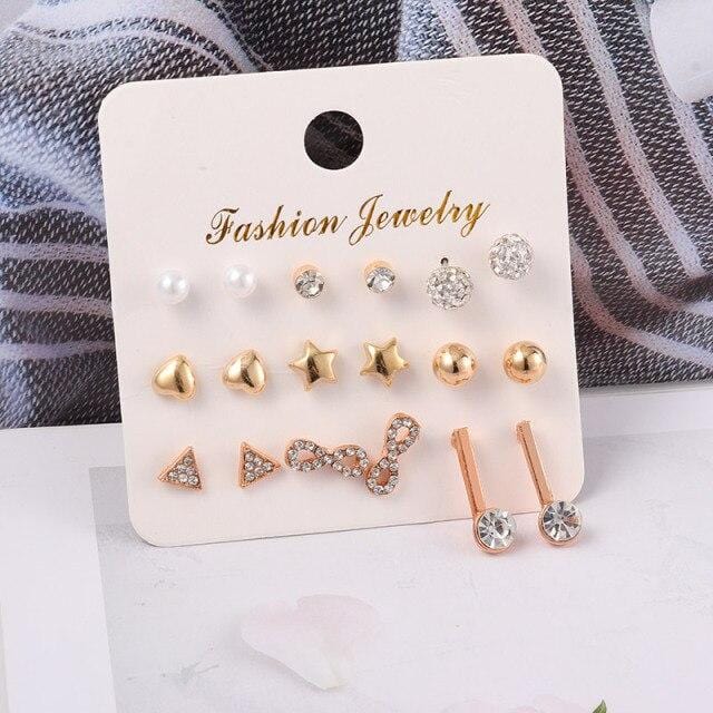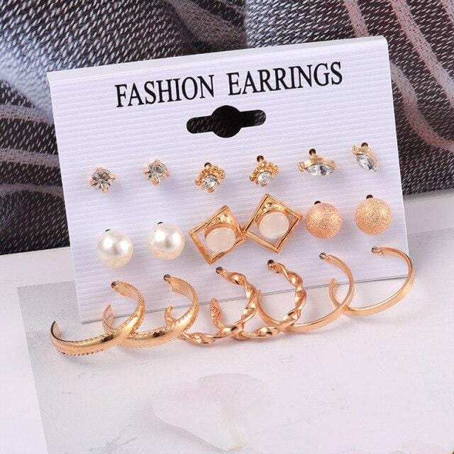 Fashion Geometric Simple Pearl Hoop Crystal Stud Earrings Sets For Women Bohemian Heart Earrings 2021 Trendy Accessories Jewelry