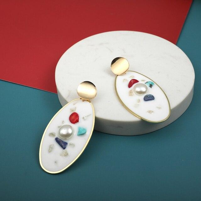 Fashion Jewelry Acrylic White Pearl Dangle Earring for Women Trendy Boho Geometric Statement Tassels Hanging Earring