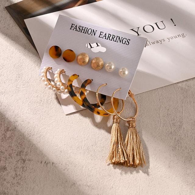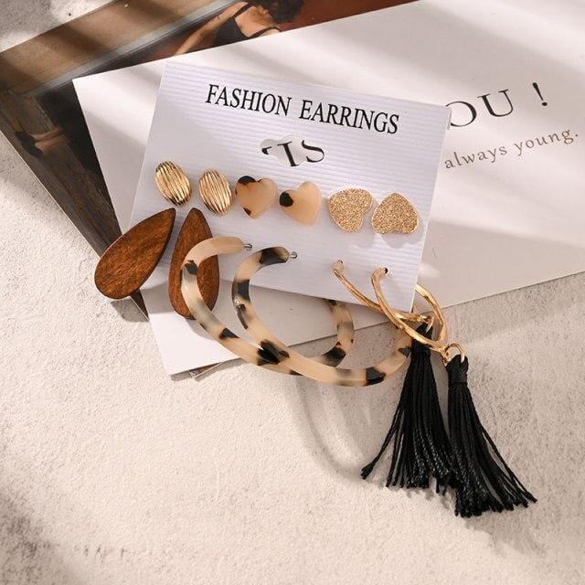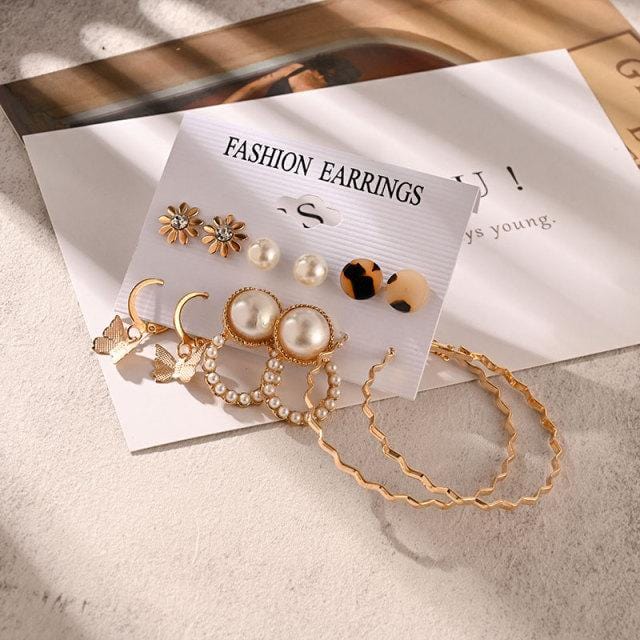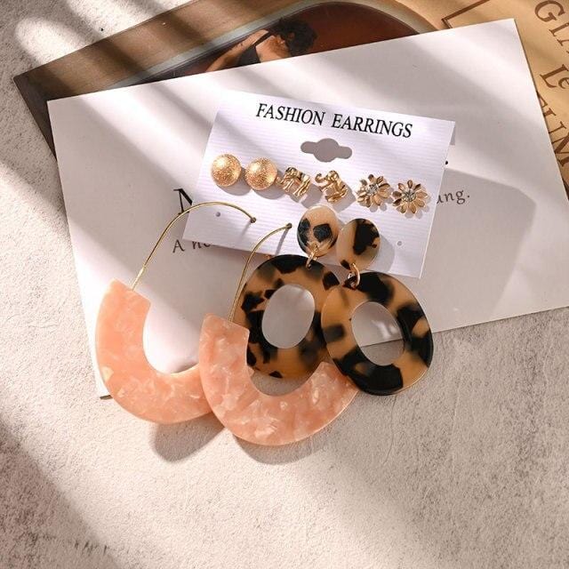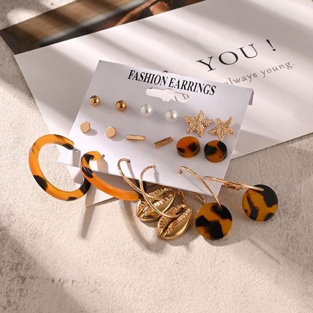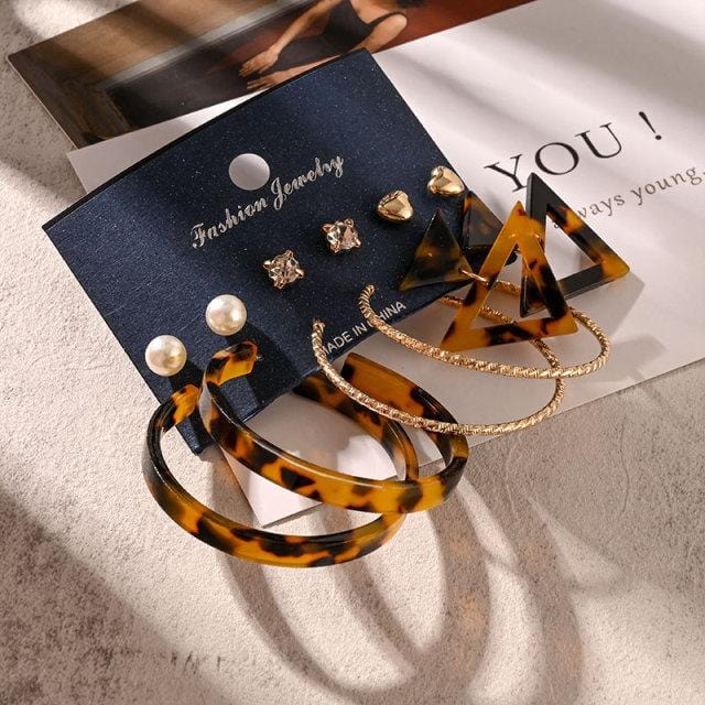 Fashion Leopard Acrylic Pearl Hoop Earrings Set For Women Geometirc Gold Metal Circle Earrings Brincos 2021 Trend Party Jewelry