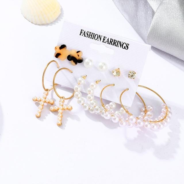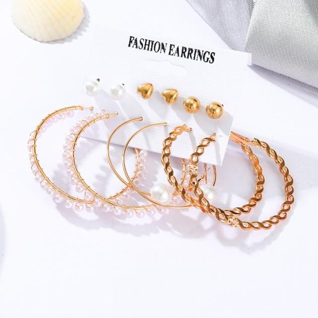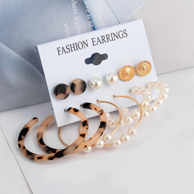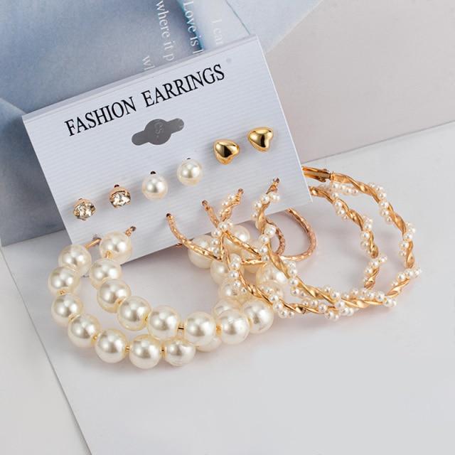 Fashion Pearl Hoop Earrings Set For Women Geometirc Statement Gold Metal Circle Hoop Earrings Brincos 2021 Trend Jewelry Gifts