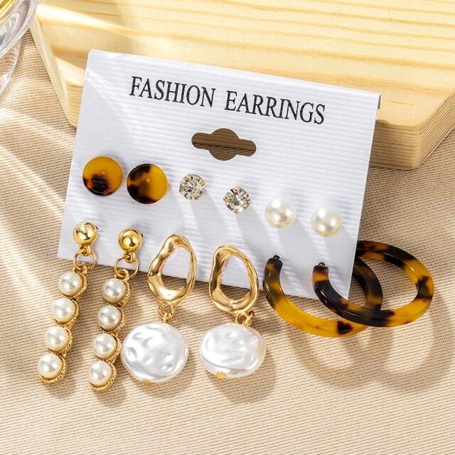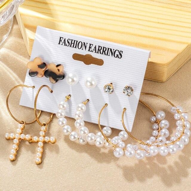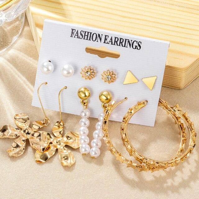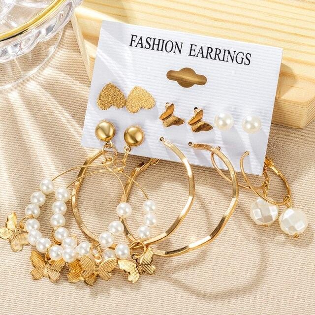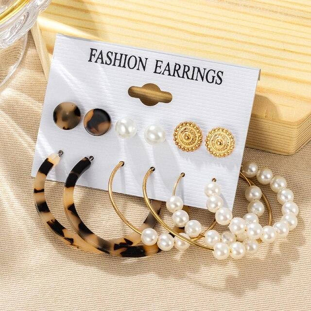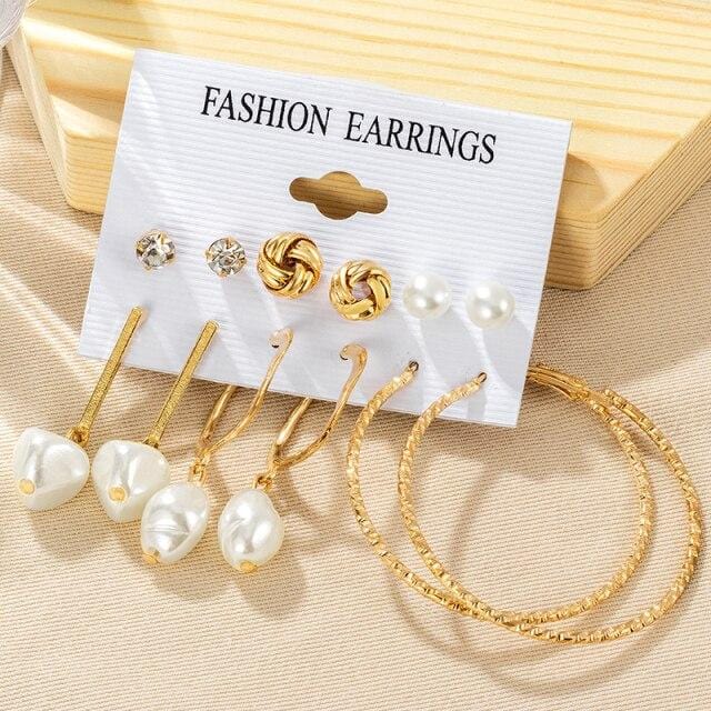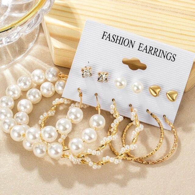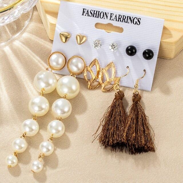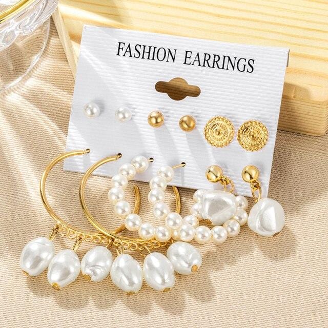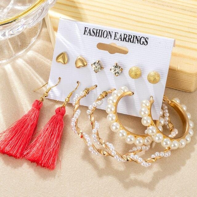 Fashion Pearl Hoop Tassel Earrings Sets For Women New Geometirc Statement Gold Metal Hanging Earrings 2021 Trend Wedding Jewelry